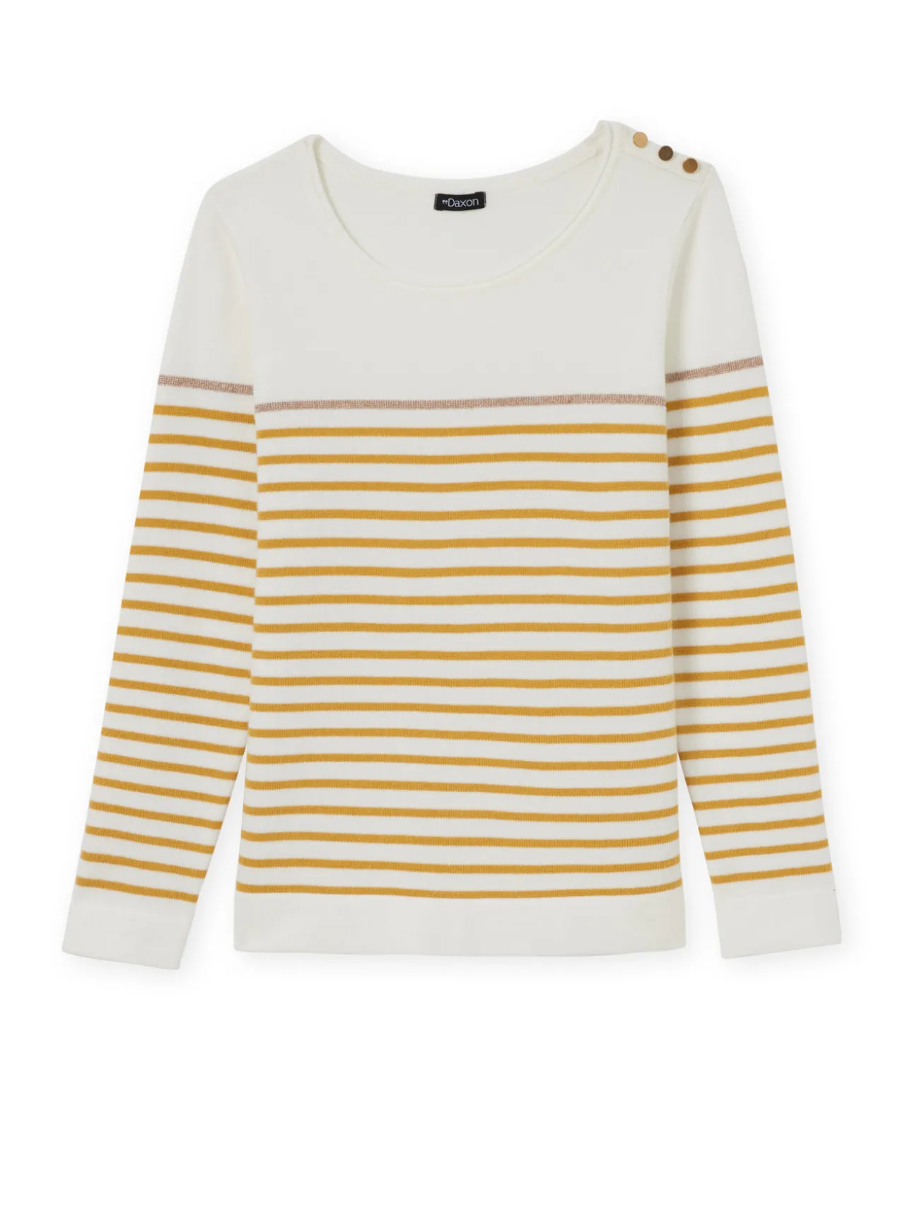 Ce pull à rayures femme est conçu pour s’adapter à toutes les morphologies : petites et grandes tailles.