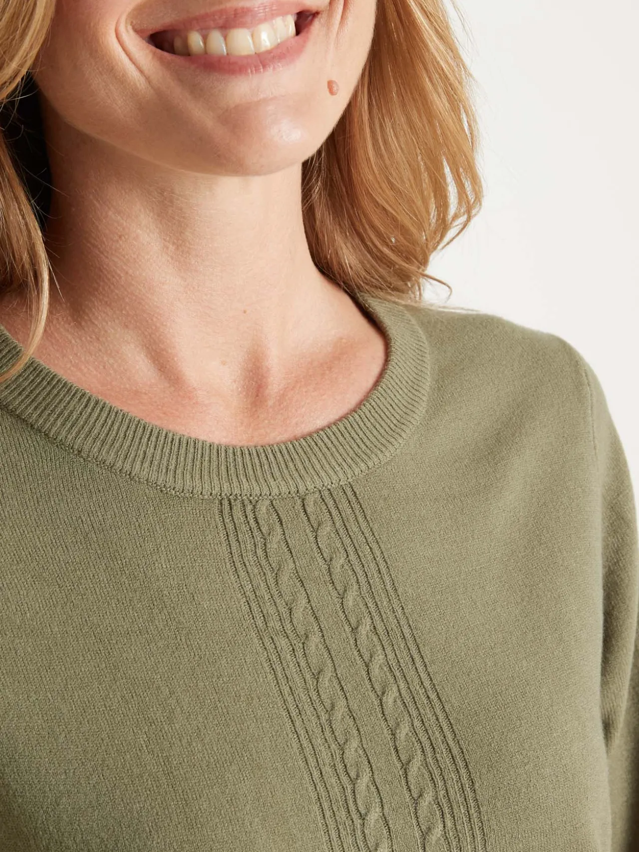 Son jeu de maille désaiguillée et de torsades donne à ce pull toucher cachemire du chic et un charme fou… On l’associe facilement à une petite jupe, un jean ou un pantalon city.