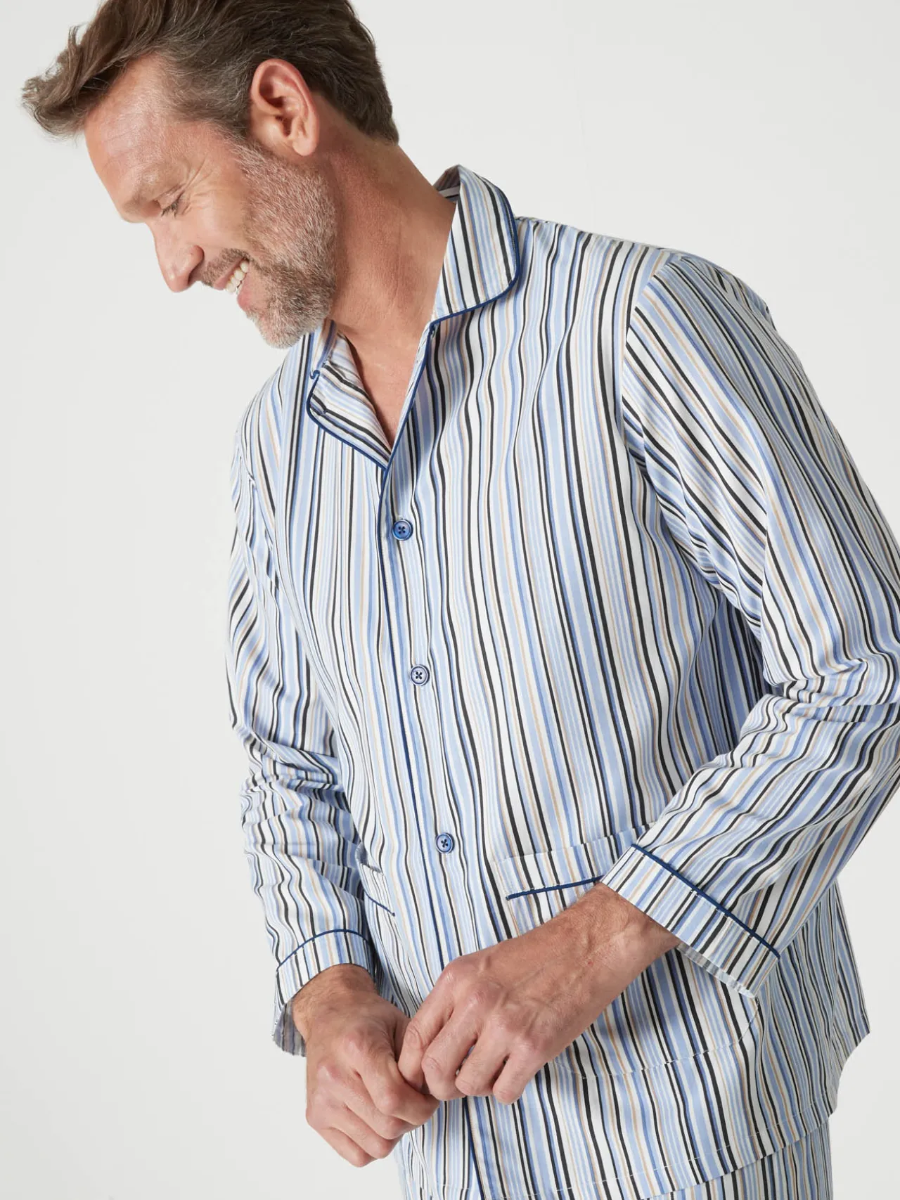 Un pyjama à la coupe classique, interprété dans un tissu polyester et coton, facile à entretenir.