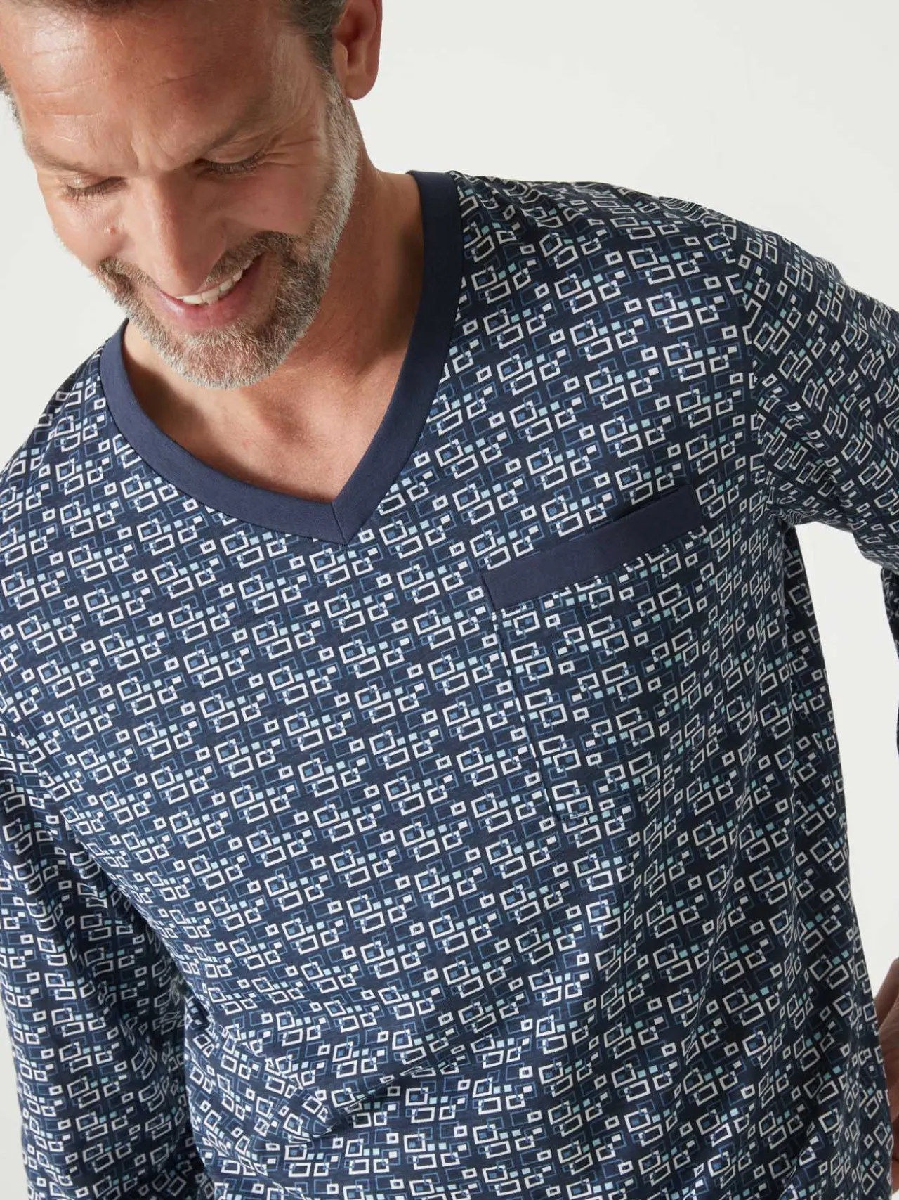 Forme jogging actuelle et imprimé original distinguent ce pyjama en maille jersey pur coton.
