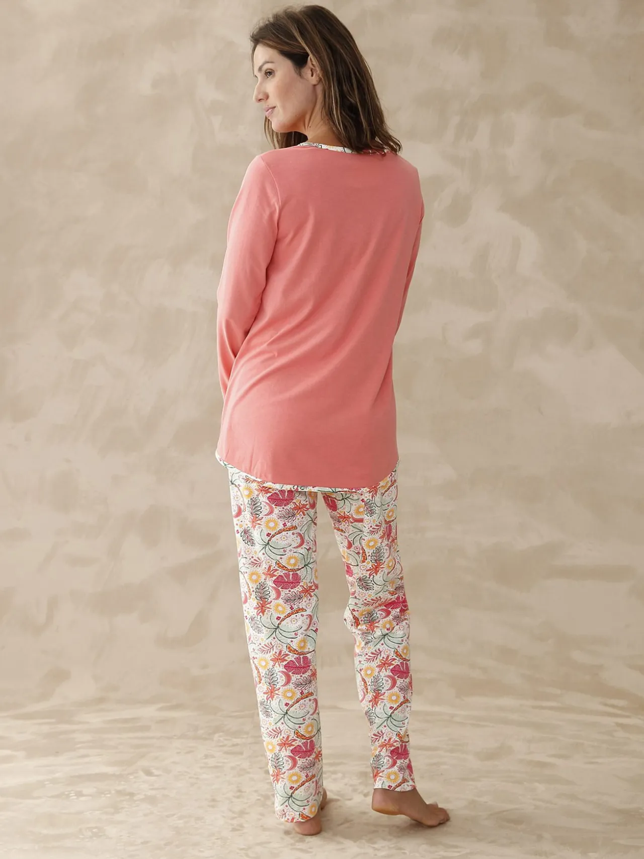 Une forme tee-shirt moderne et tout confort pour ce pyjama manches longues. Son bel imprimé rose et sa maille tout coton promettent des réveils et des soirées tout en fraîcheur…