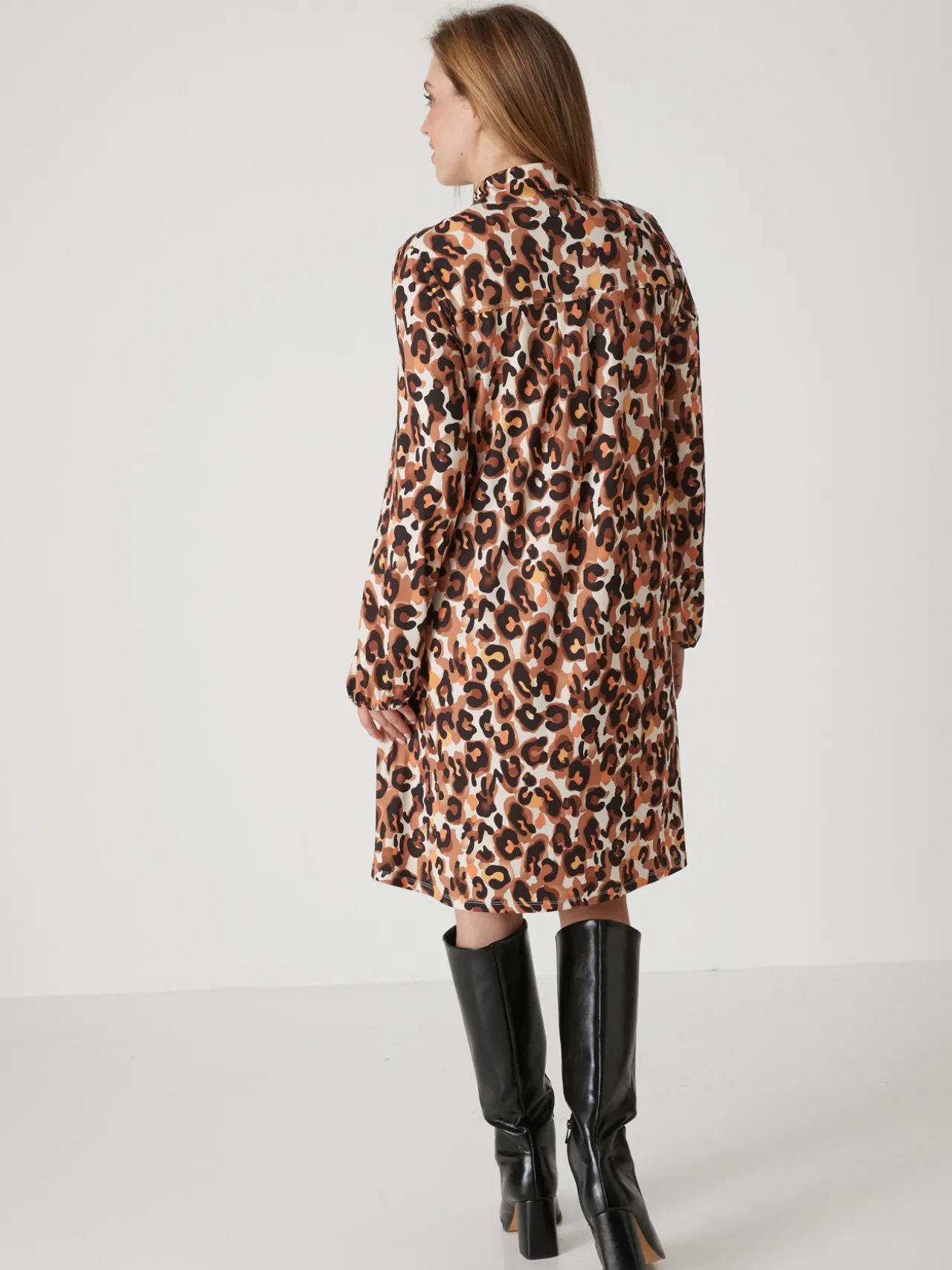 L’imprimé peau de bête pose sa griffe sur la maille de cette robe col montant. Vous la porterez droite ou lui ajouterez une jolie ceinture en cuir pour souligner la taille : elle sera tout aussi stylée !