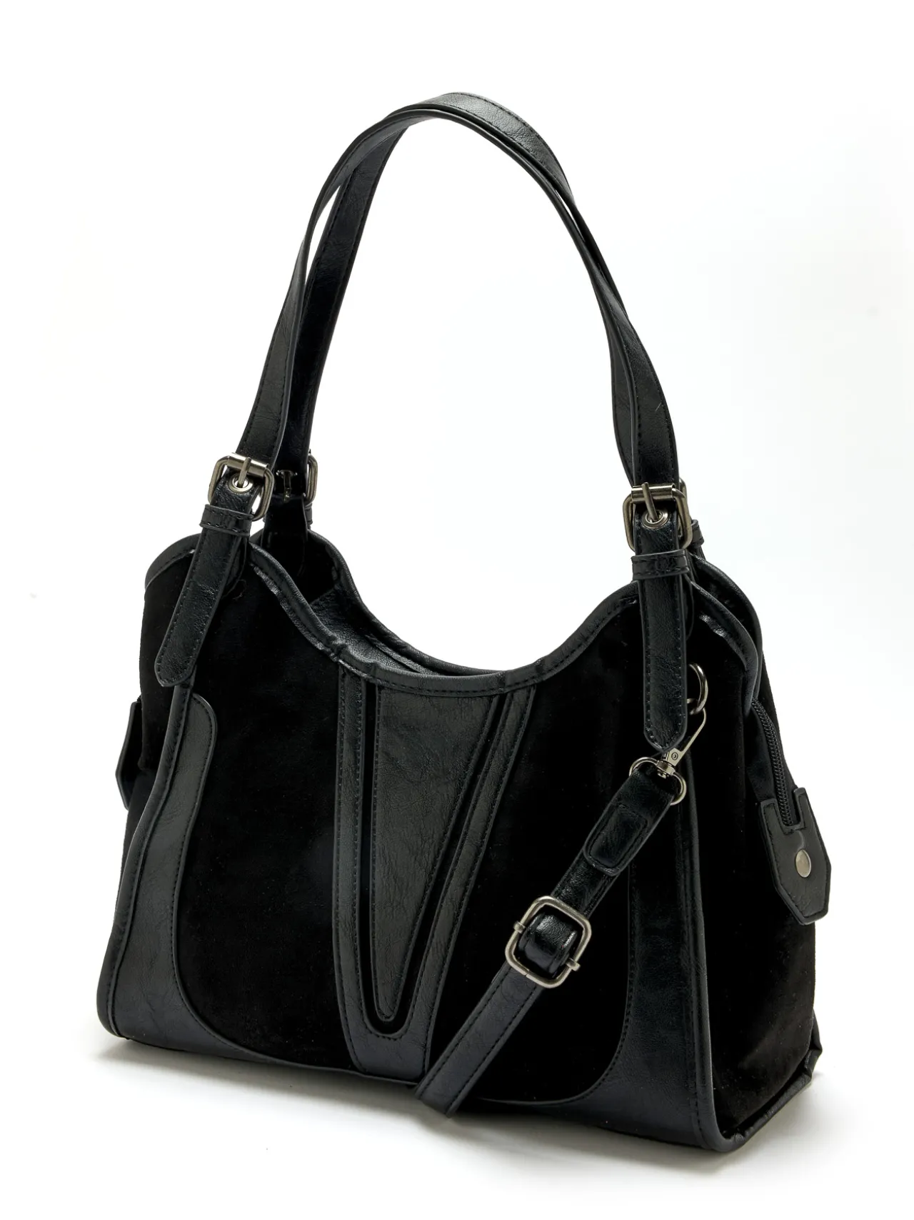 Une forme cabas stylée et pratique pour ce sac à main noir. Un indispensable du dressing facile à coordonner à de nombreuses tenues.