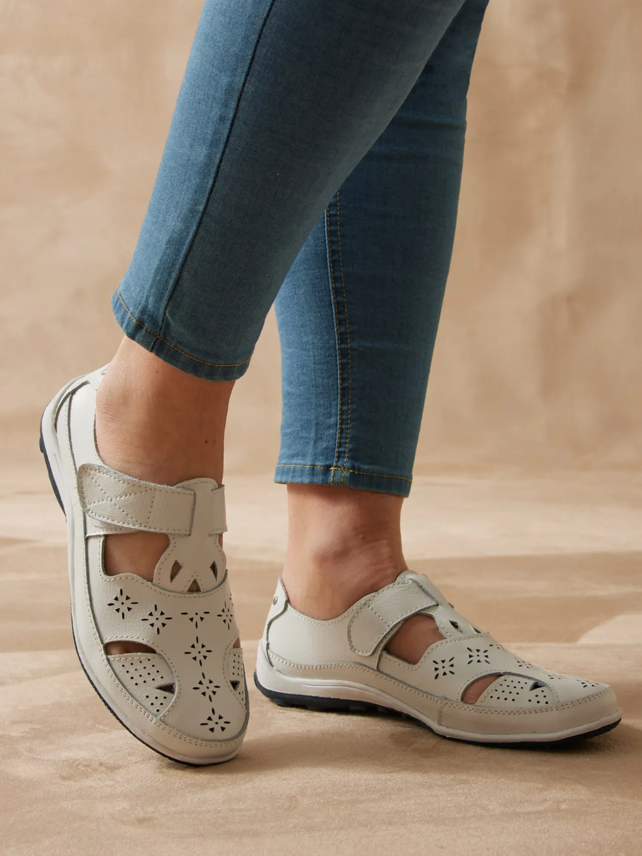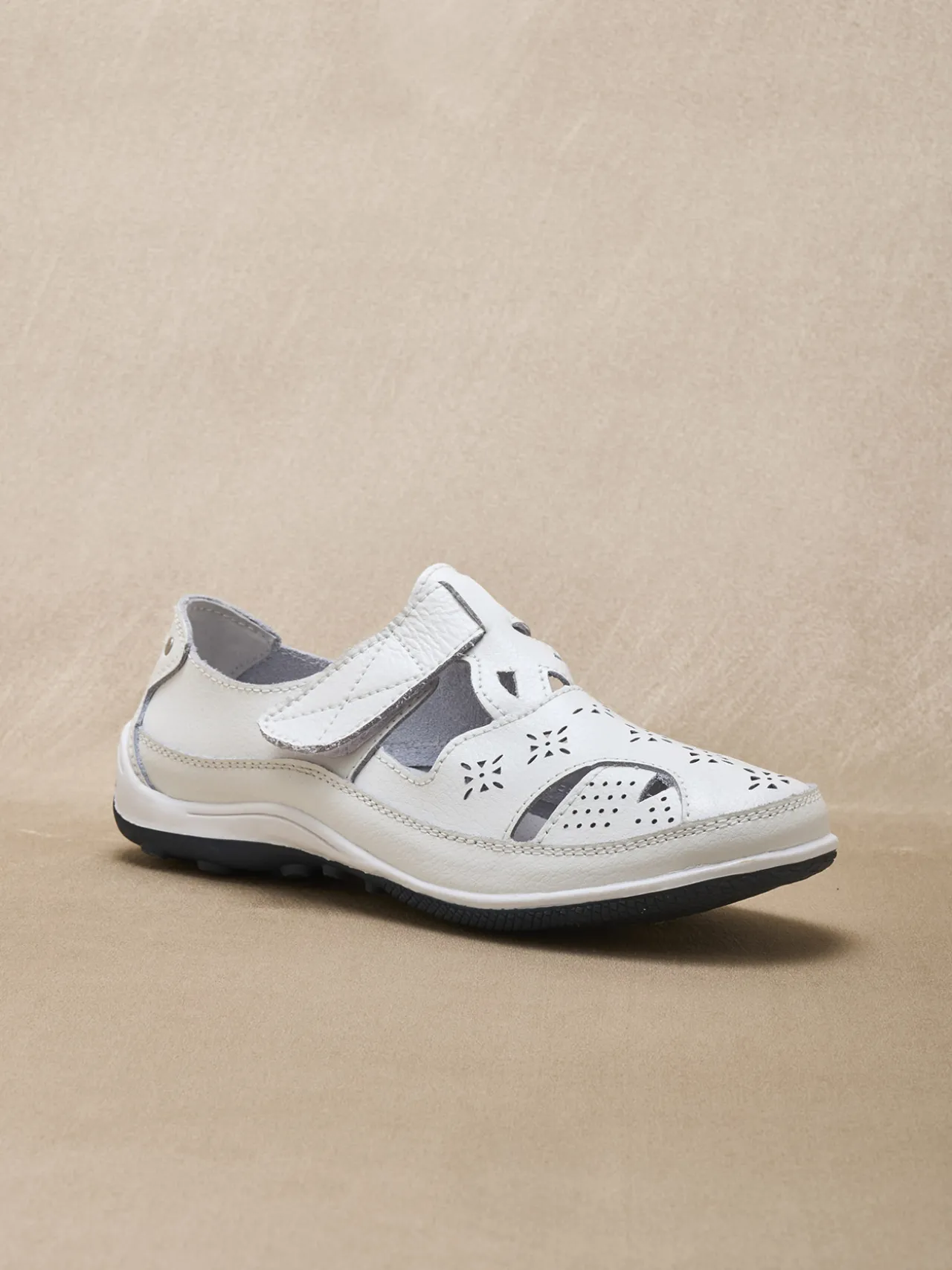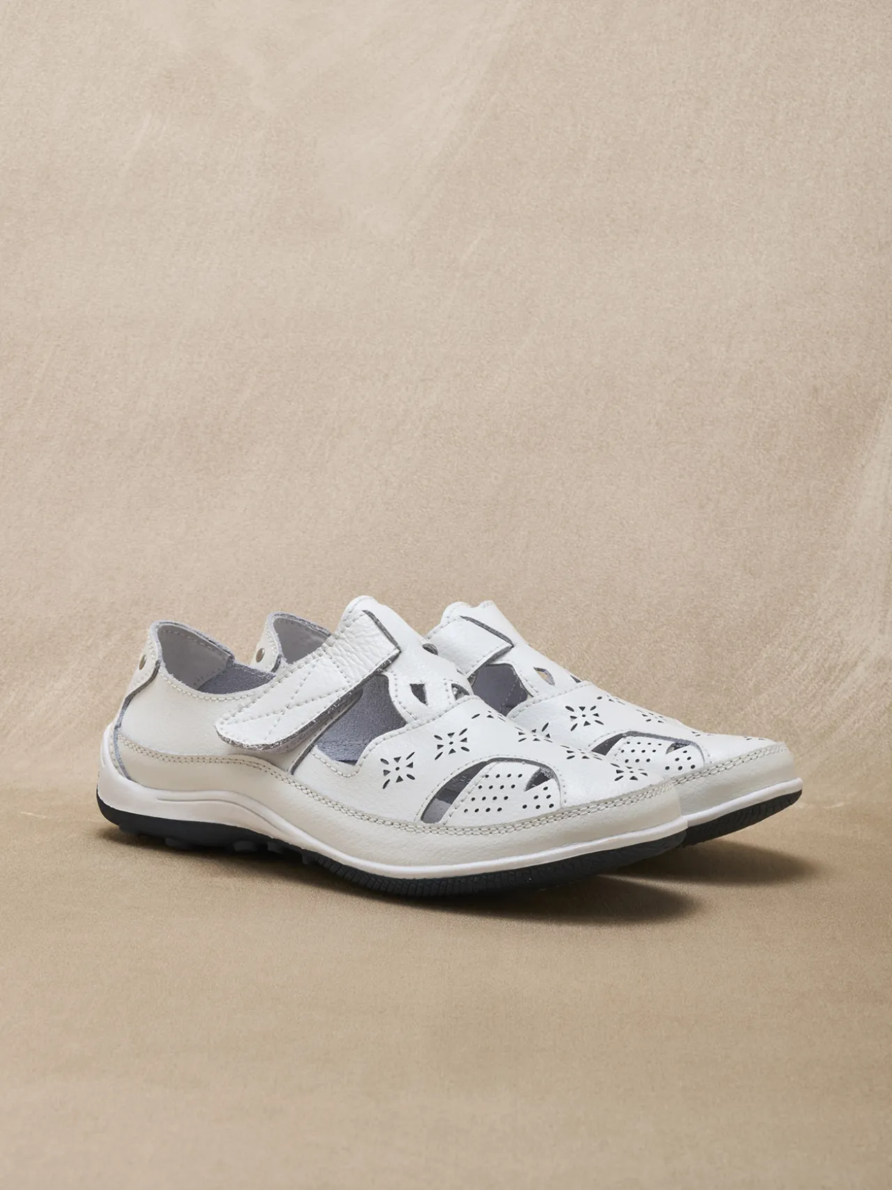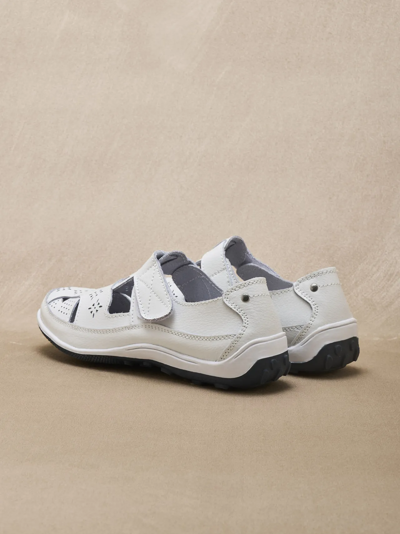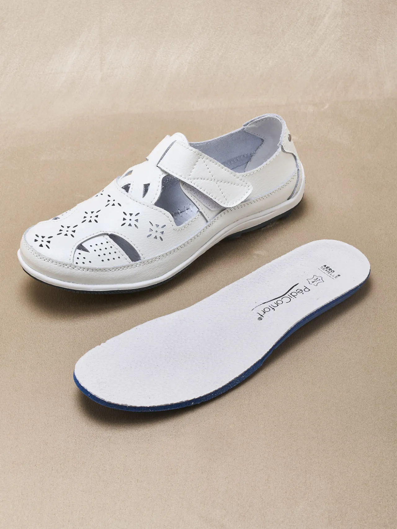 Un classique du confort : les salomés ajourés PEDICONFORT®. Ils laissent agréablement respirer le pied et s’adaptent en souplesse au cou-de-pied grâce à leur patte scratch.