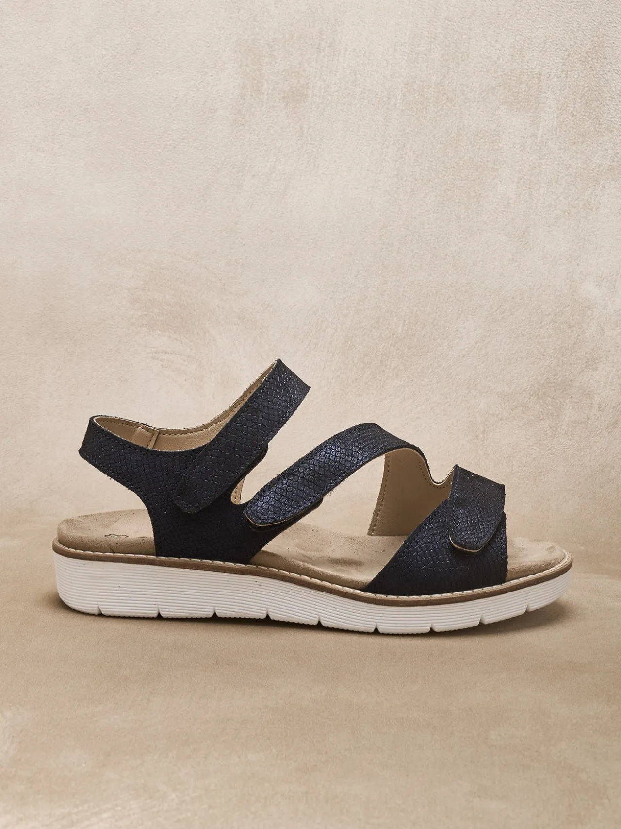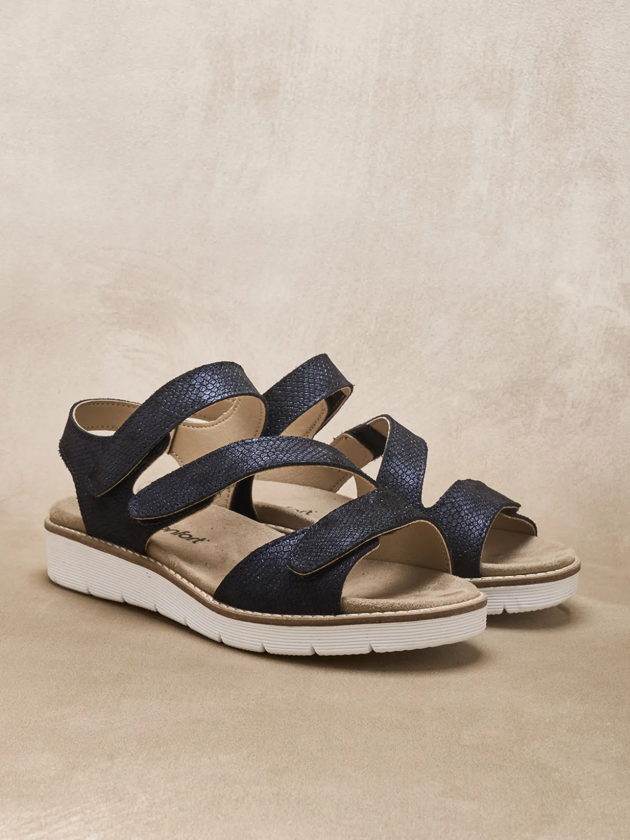 Ouverture totale pour confort total ! Voilà ce qui caractérise ces sandales compensées munies de 3 pattes sctrachs. Elles sont également munies d’une semelle intérieure amovible afin de pouvoir porter vos propres semelles correctrices.