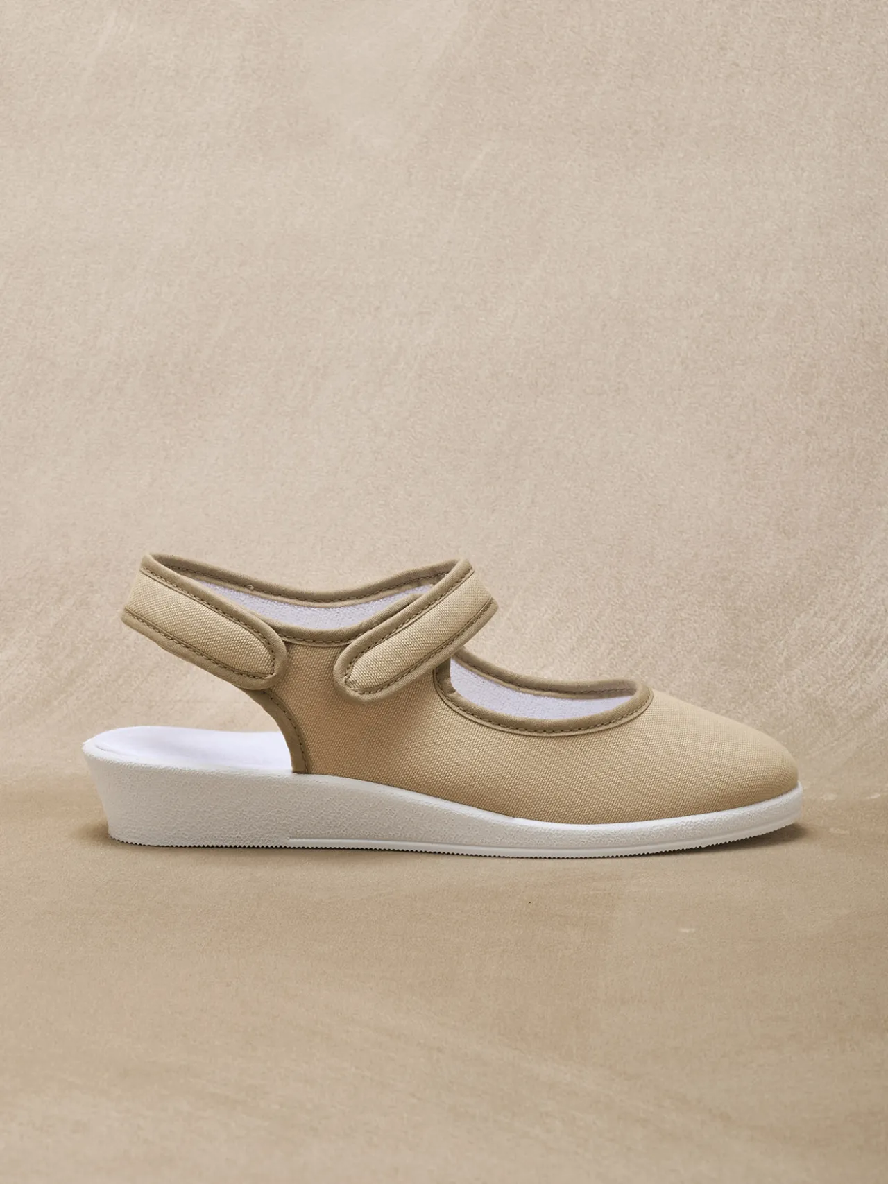 Ajustables par une pattes scratch sur le cou-de-pied et une au talon, ces sandales textile permettent une ouverture totale, idéal s’adapter aux variations des pieds qui gonflent.
