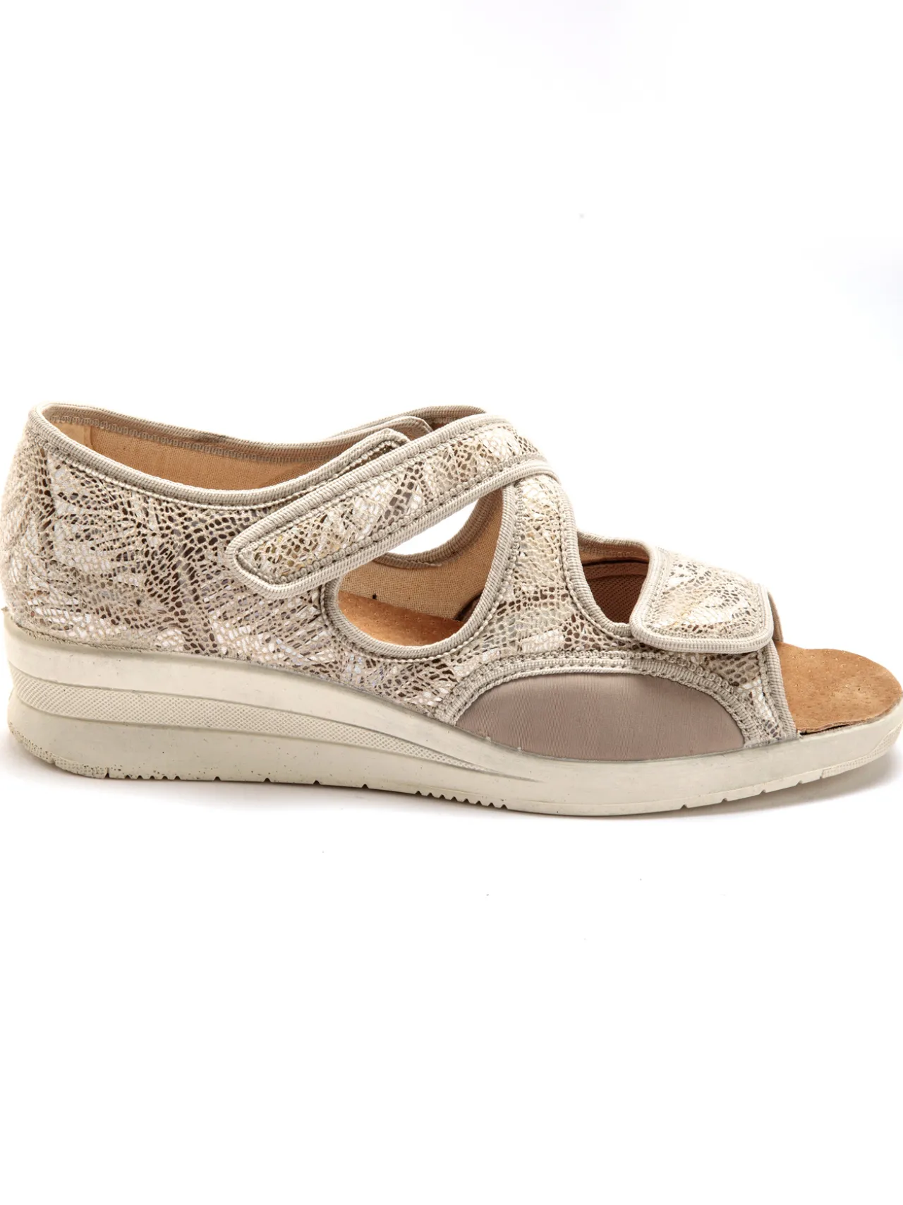 Le dessus est extensible et s’adapte en douceur à la morphologie des pieds les plus sensibles (idéal en cas d’hallux valgus).