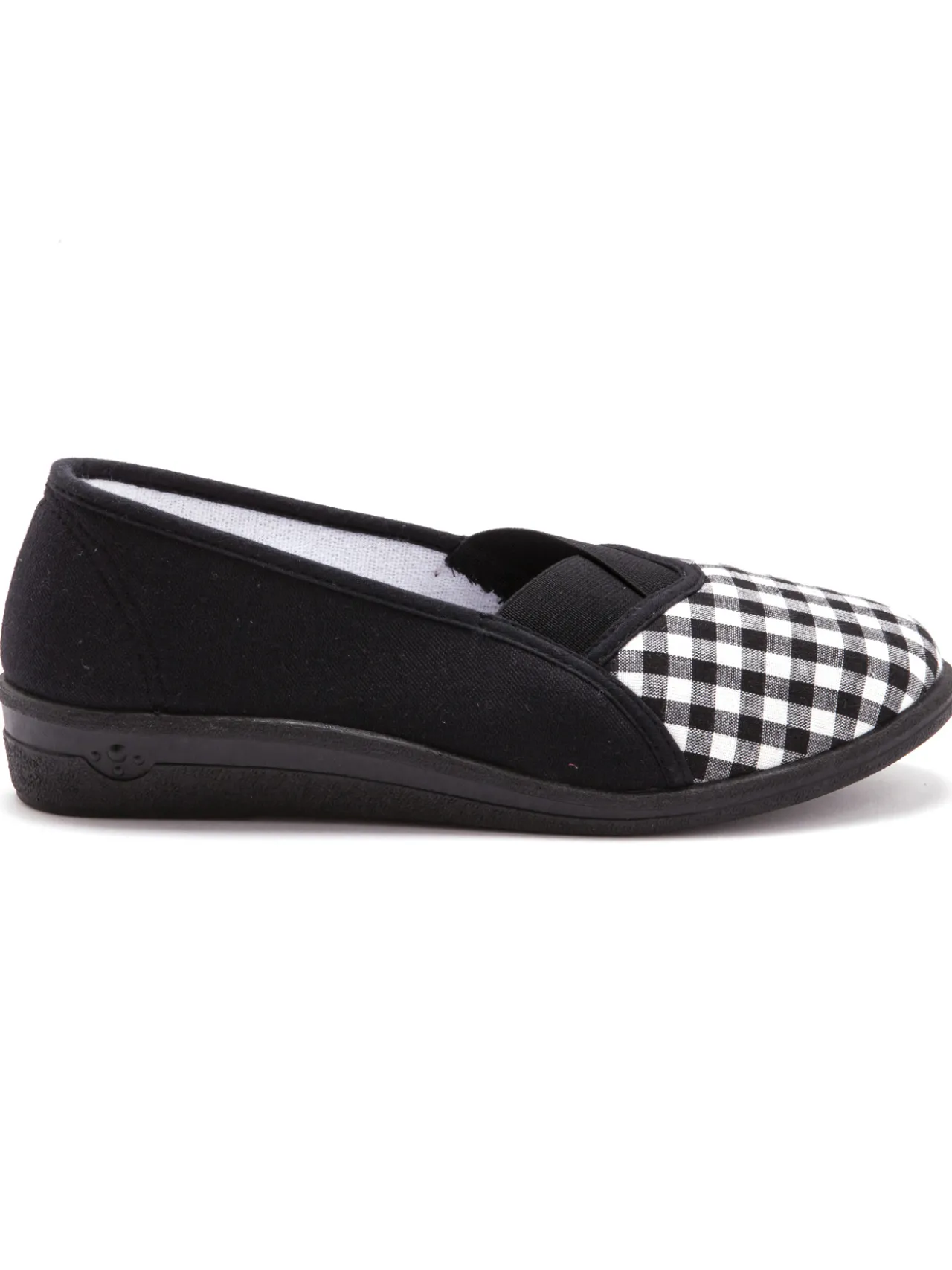 – Talon des pantoufles en toile femme : 2,5 cm environ