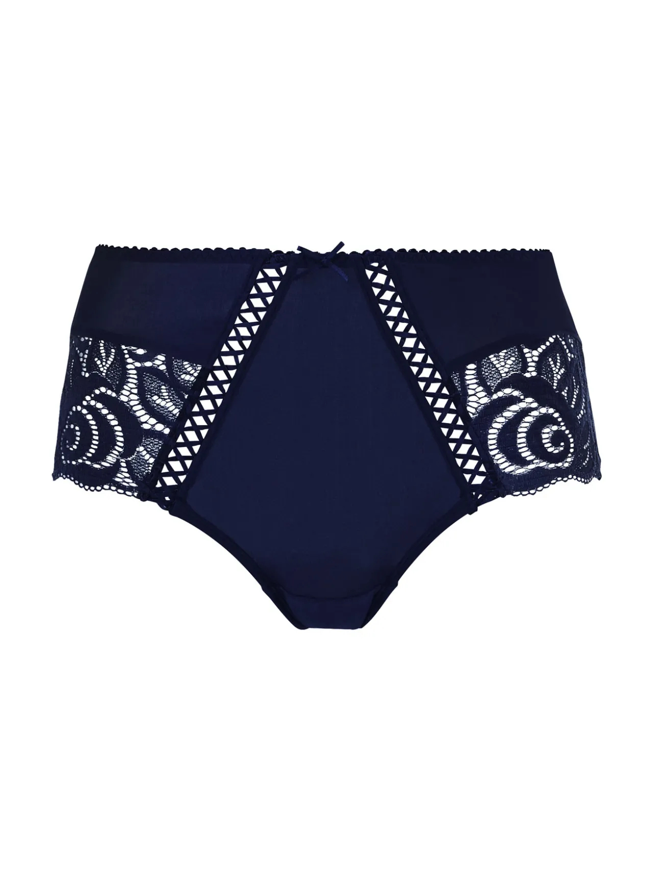 Shorty Amélie SANS COMPLEXE offrant une bonne couvrance, composé d’un mix entre une jolie dentelle très visuelle et une douce microfibre satinée.
