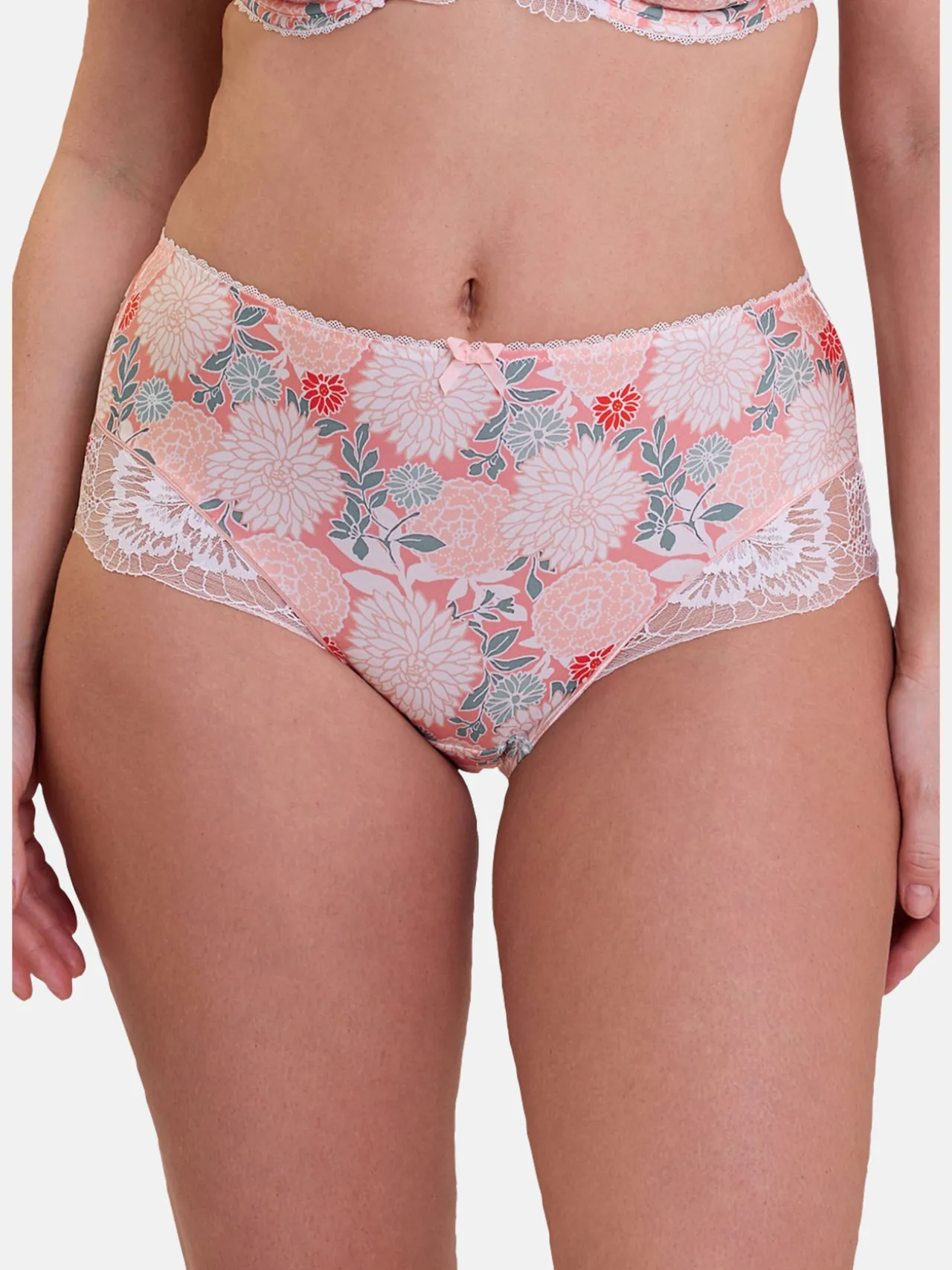 Découvrez le shorty Aurélie SANS COMPLEXE, une fusion de dentelle délicate et de microfibre imprimée au motif floral.