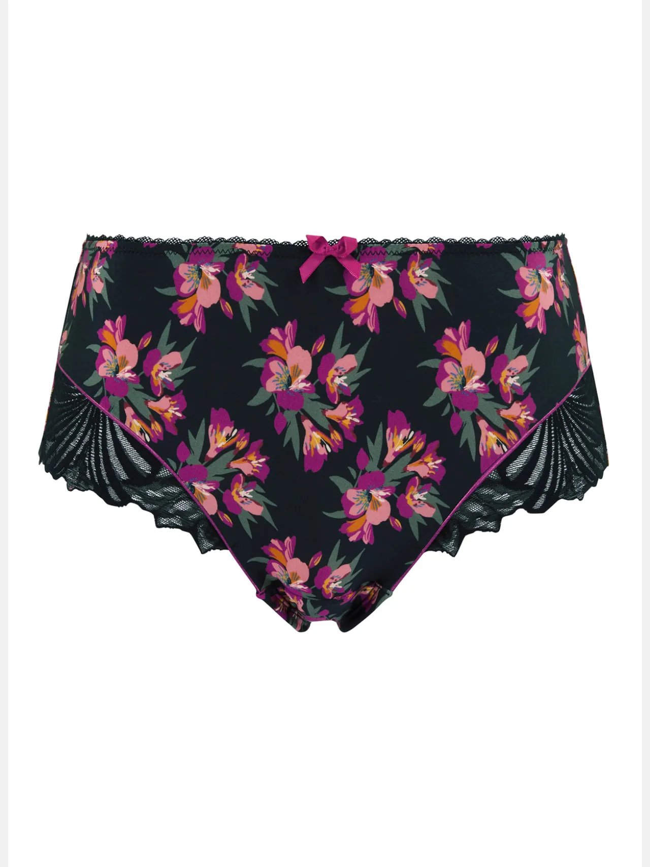 Découvrez le shorty Oriane SANS COMPLEXE, une fusion de dentelle délicate et de microfibre imprimée au motif floral.