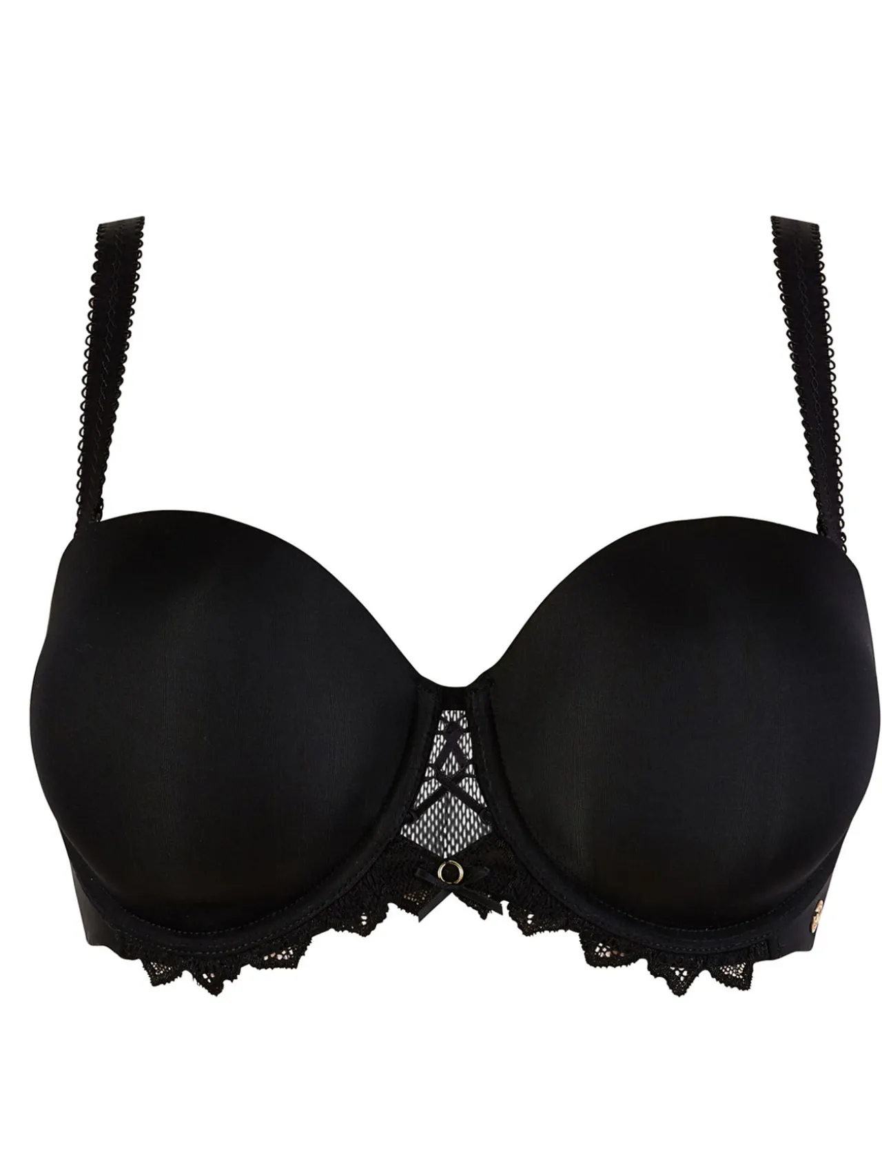 – Un jeu de laçage et la dentelle extensible sous le bonnet apportent la touche de glamour