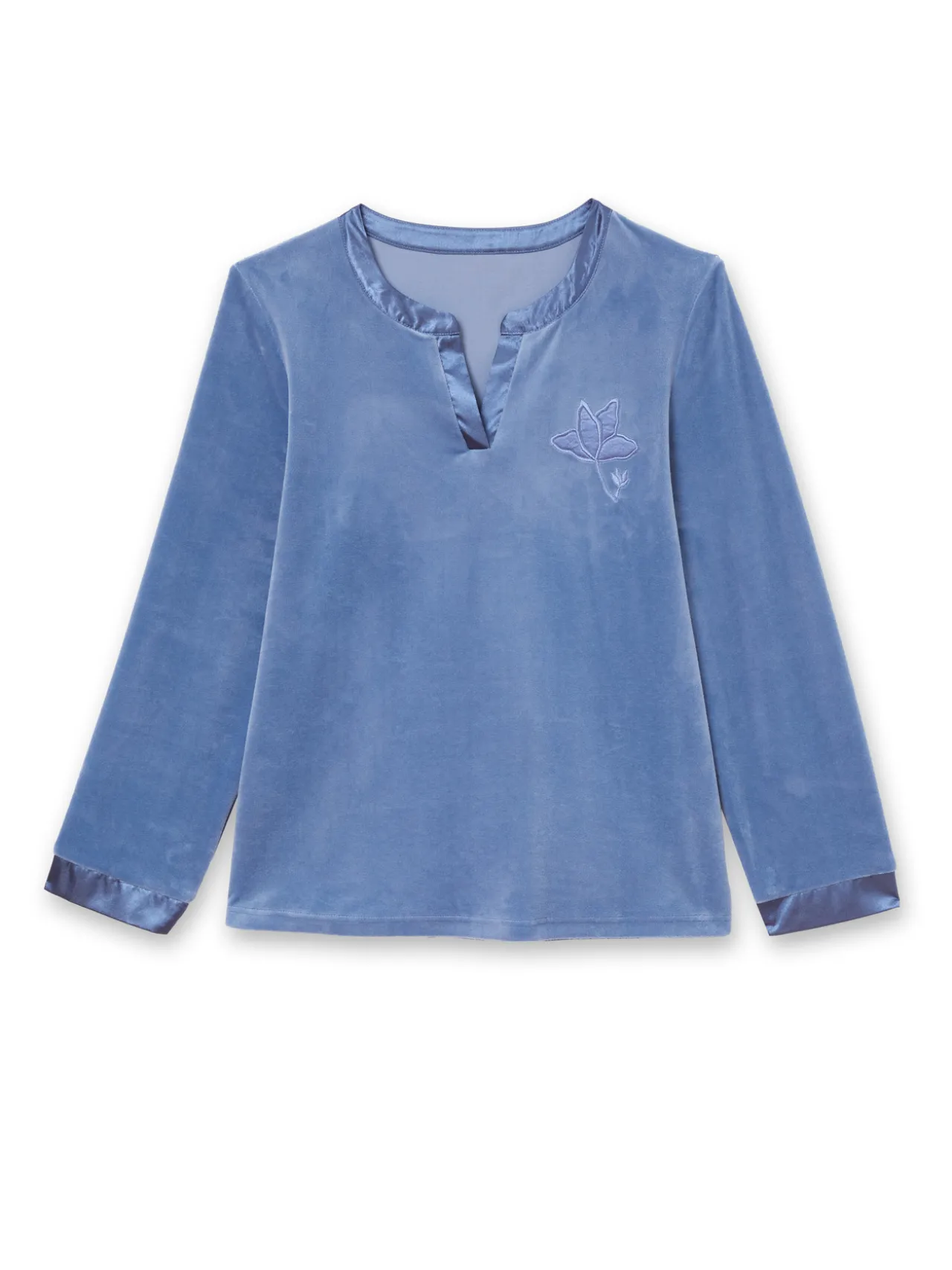 Douceur et confort de la maille velours et raffinement des détails satinés pour ce t-shirt de pyjama. Vous le coordonnerez au pantalon de pyjama assorti ou à un legging ou modèle de votre choix.