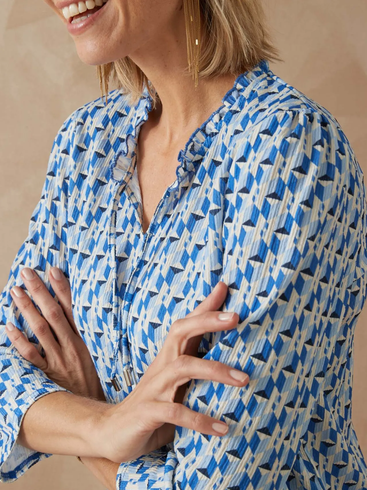 Un style chic comme une blouse, un col volanté ultra féminin et une maille gaufrée fantaisie… On se laisse tenter par ce tès joli tee-shirt imprimé.