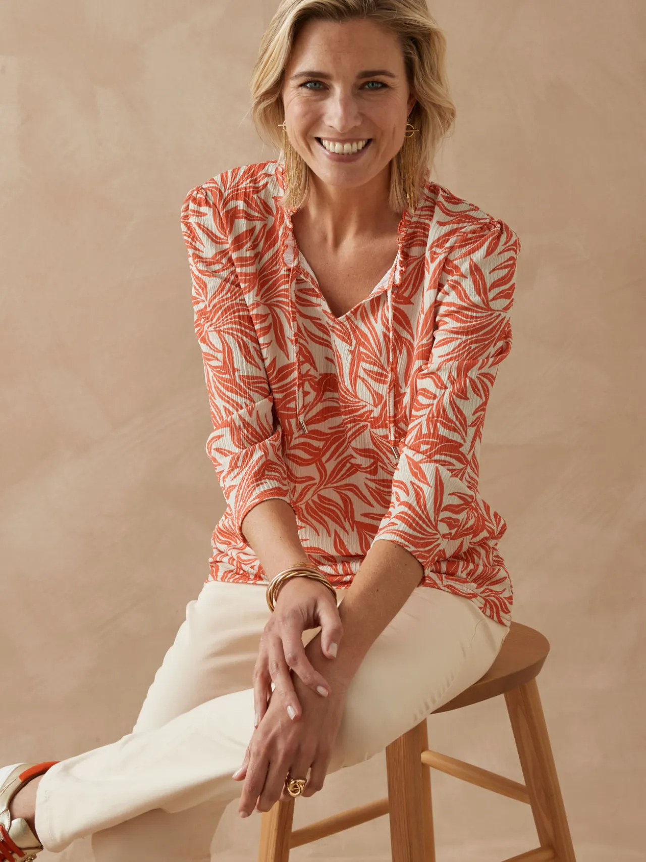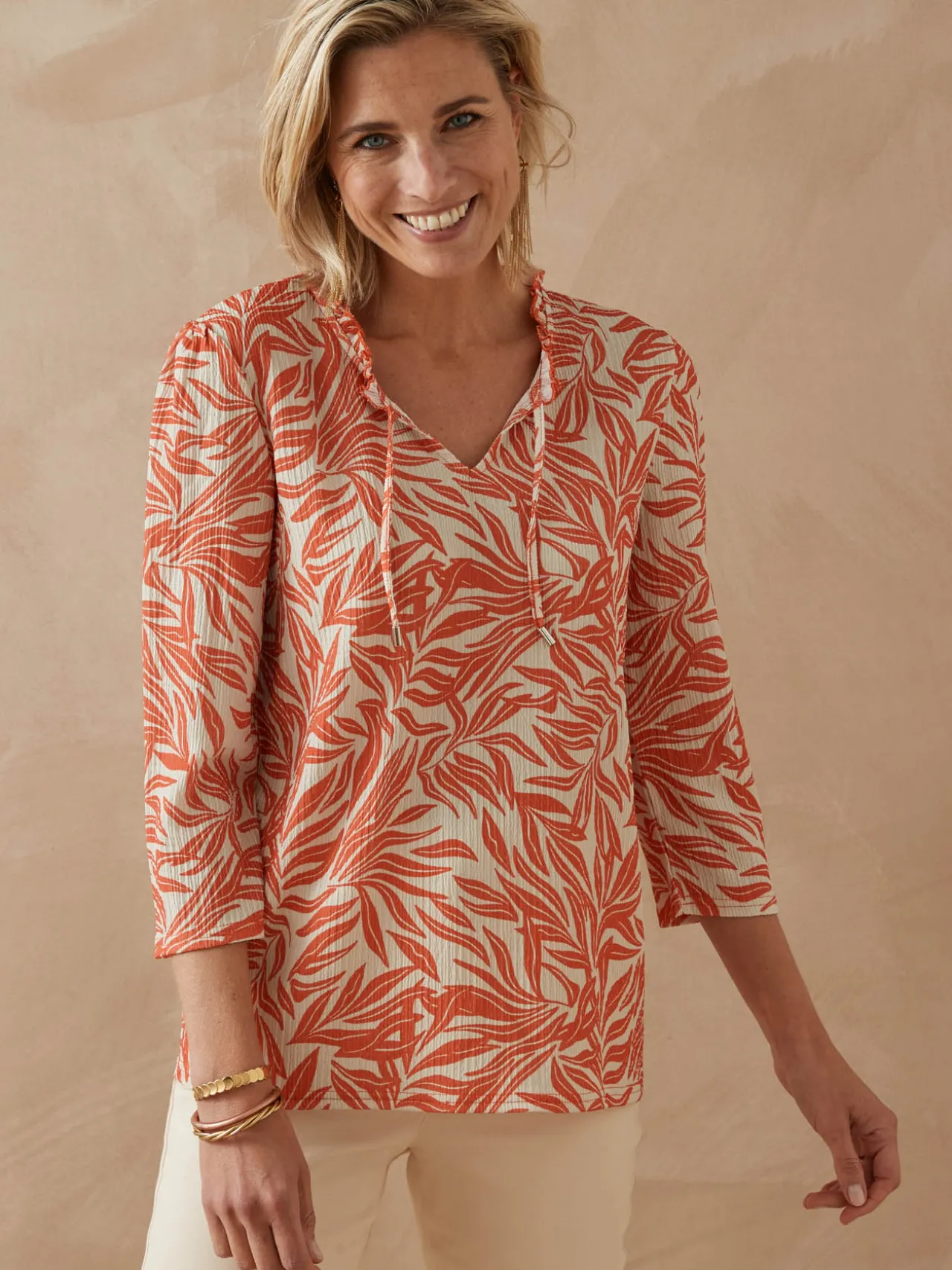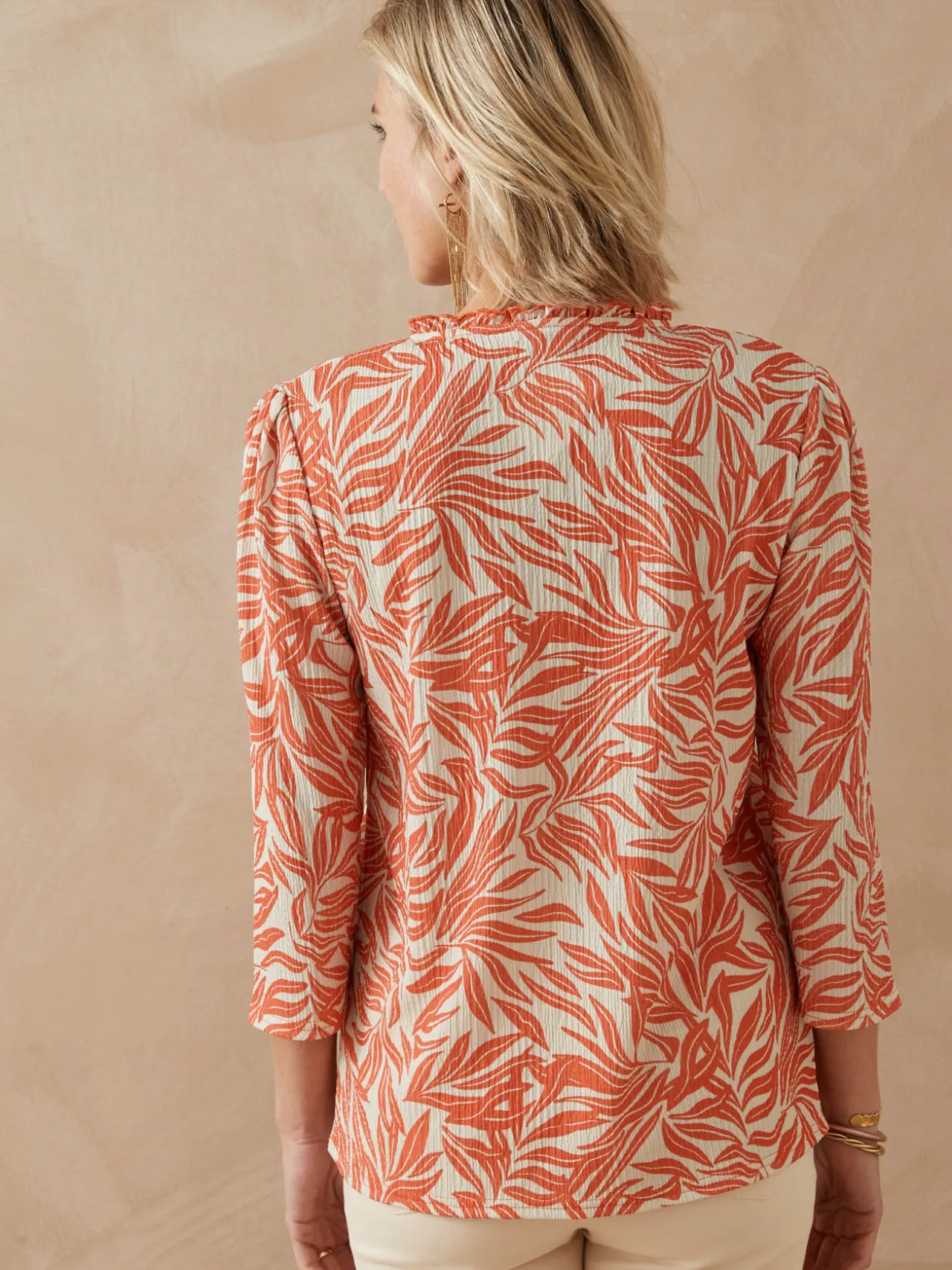 Un style chic comme une blouse, un col volanté ultra féminin et une maille gaufrée fantaisie… On se laisse tenter par ce tès joli tee-shirt imprimé.