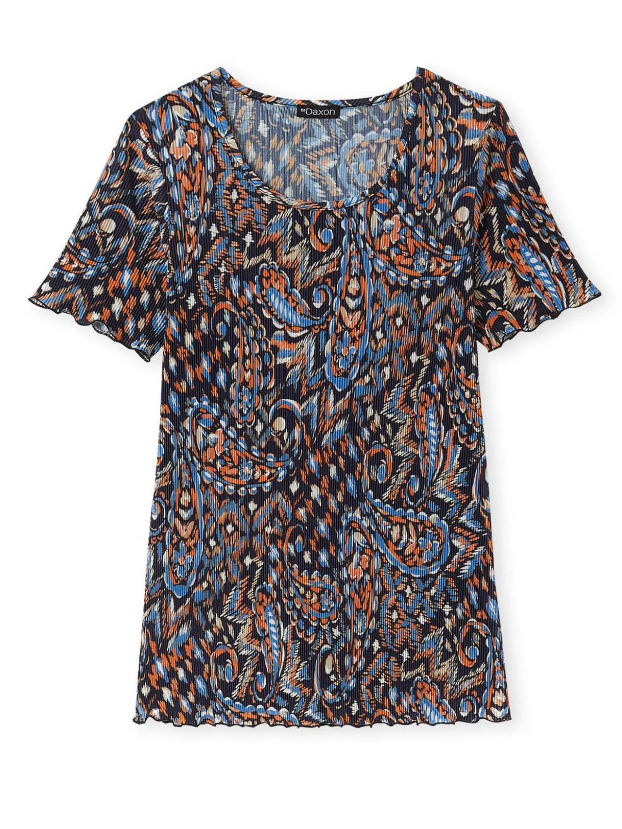 Exactement le style de T-shirt léger que l’on aime porter dès qu’il fait beau ! Son plissé permanent est aussi stylée que pratique : vite lavé, vite séché et pas de repassage :