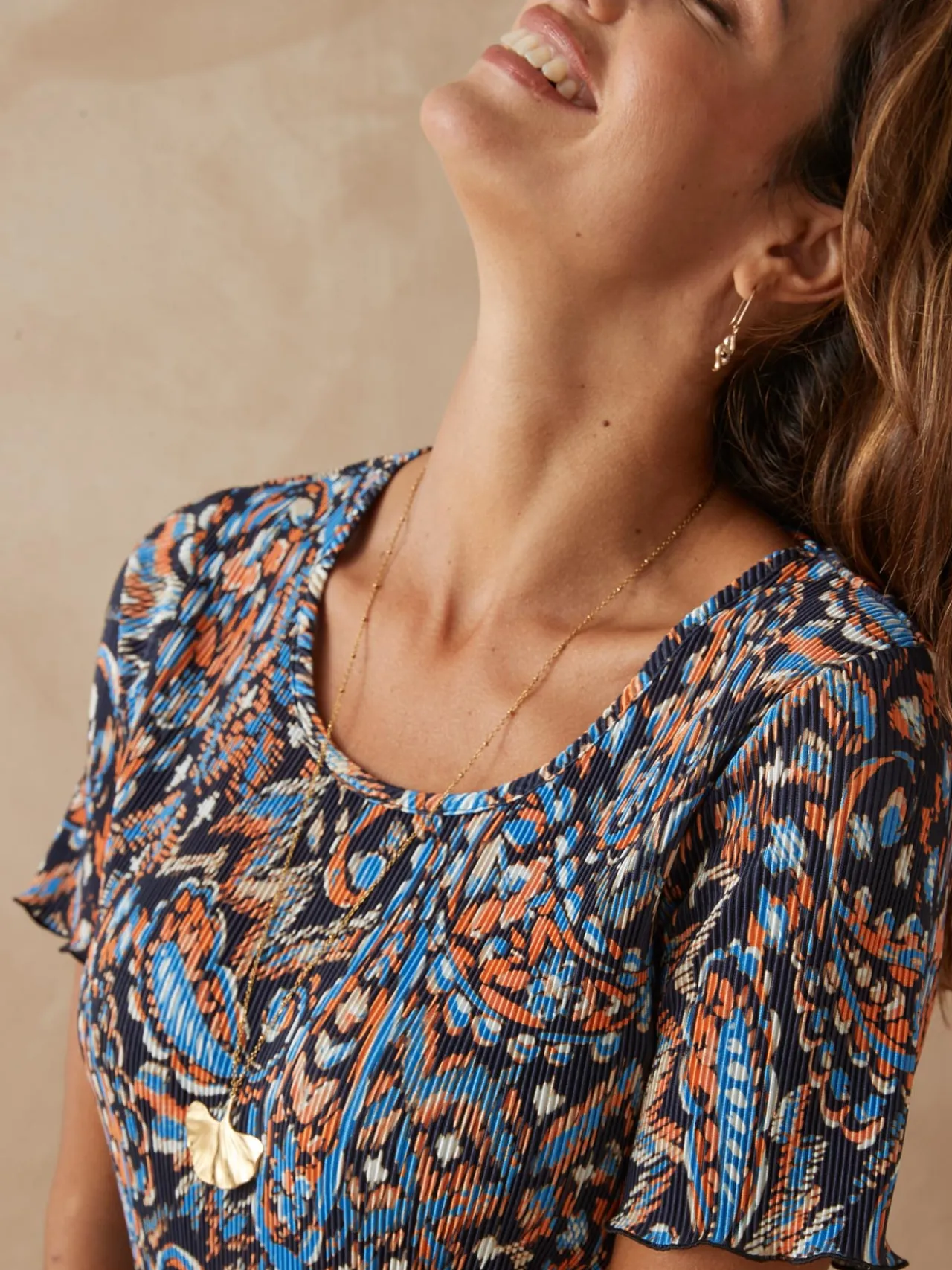 Ce tee-shirt plissé femme est conçu pour s’adapter à toutes les morphologies : petites et grandes tailles.