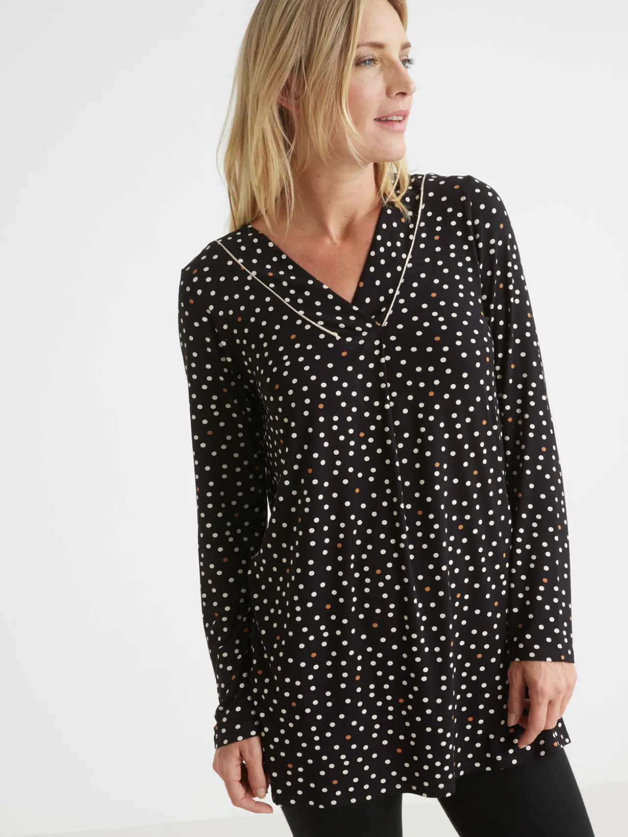 Un imprimé tendance bohème chic, une forme flatteuse et une jolie finition à l’encolure, ce tee-shirt tunique s’impose avec style dans notre nouvelle collection.
