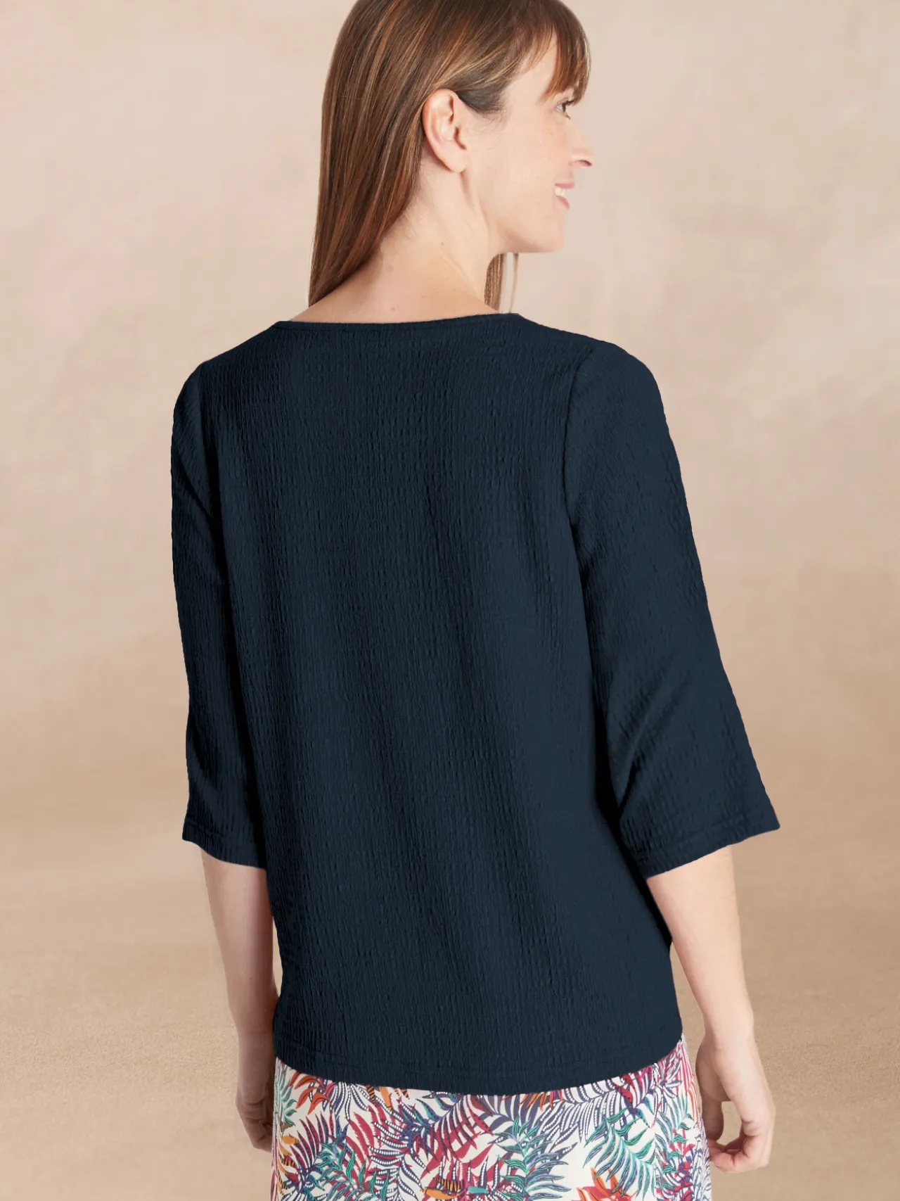Ce t-shirt femme est conçu pour s’adapter à toutes les morphologies : petites et grandes tailles.