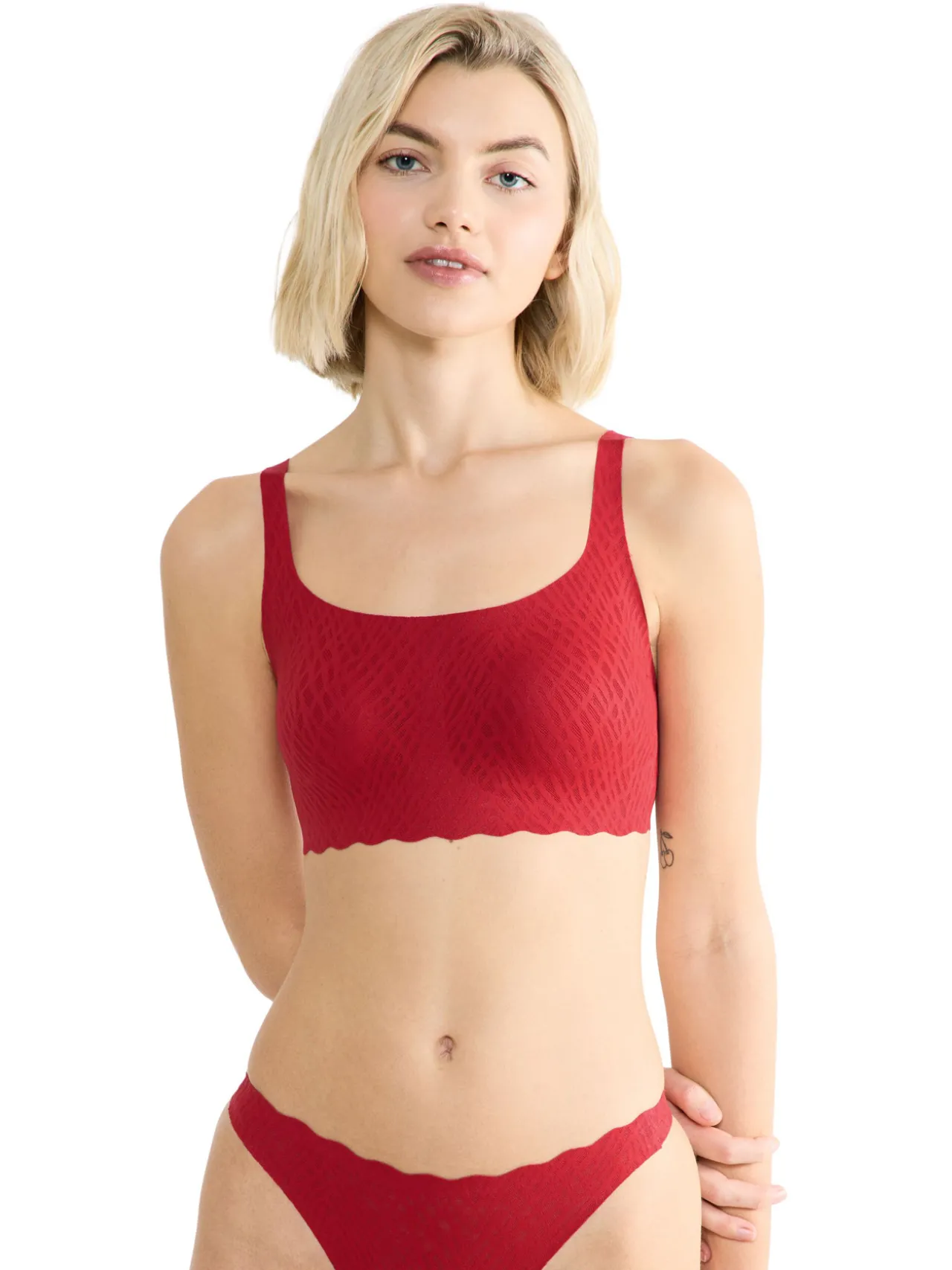Faites de chaque jour une pure romance avec ce top Sloggi ZERO Feel Bliss, qui offre le confort invisible et sans couture de ZERO Feel dans une délicate dentelle extensible à 360°. Les coques amovibles rehaussent votre silhouette, tandis que l’ourlet ondulé à coupe libre assure un ajustement confortable et sans boucles. Disponible cette saison dans un rouge festif en édition limitée !