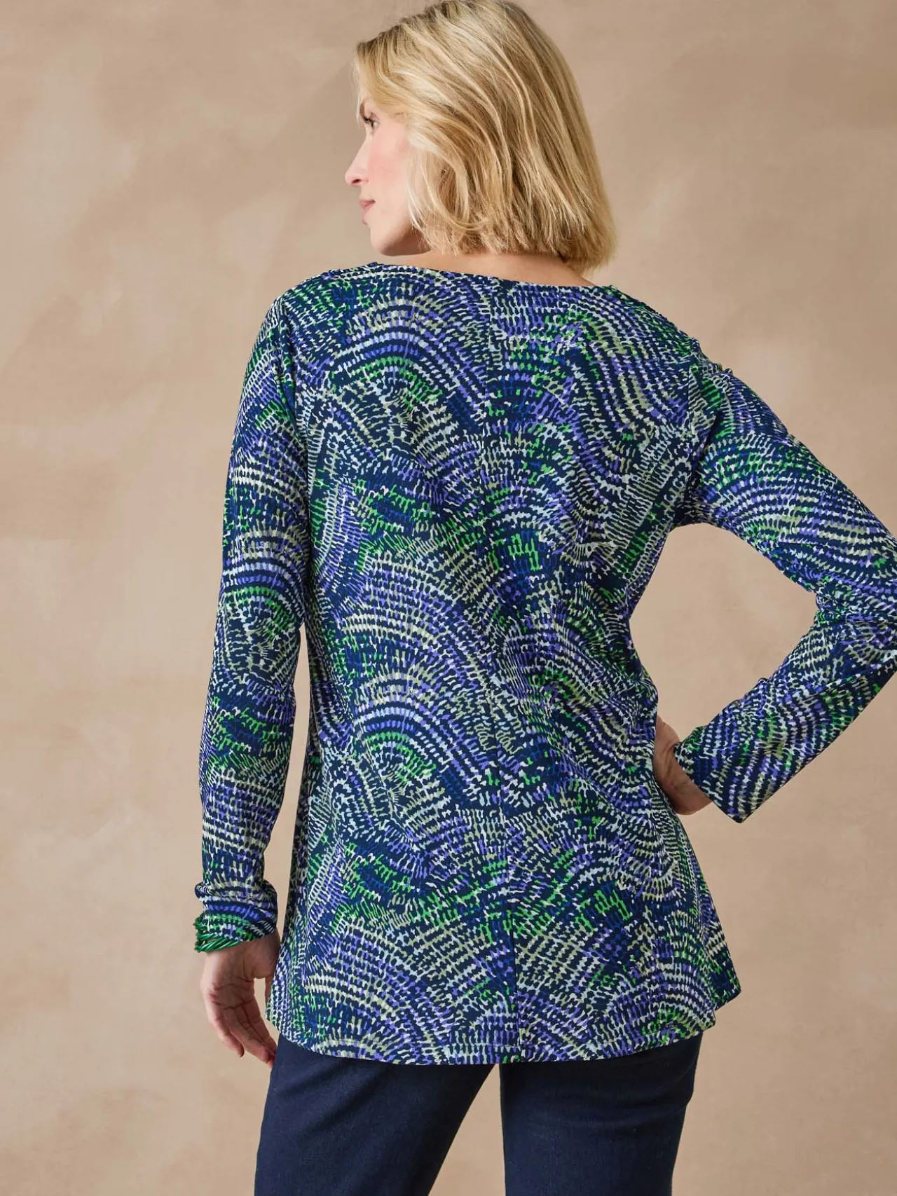 Cette tunique drapée femme est conçue pour s’adapter à toutes les morphologies : petites et grandes tailles.