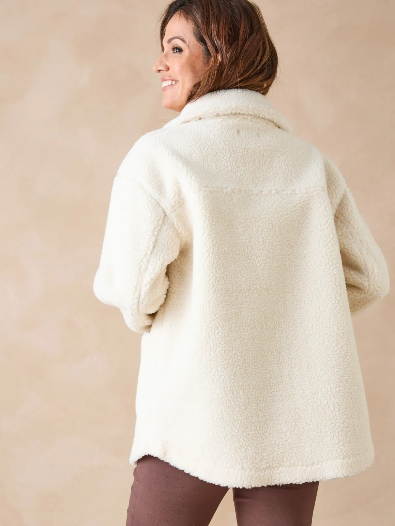 Esprit surchemise très sympa pour cette veste en maille moutonnée. Un vrai cocon chaleur ! Le coloris de cette veste chaude permet de nombreuses associations.